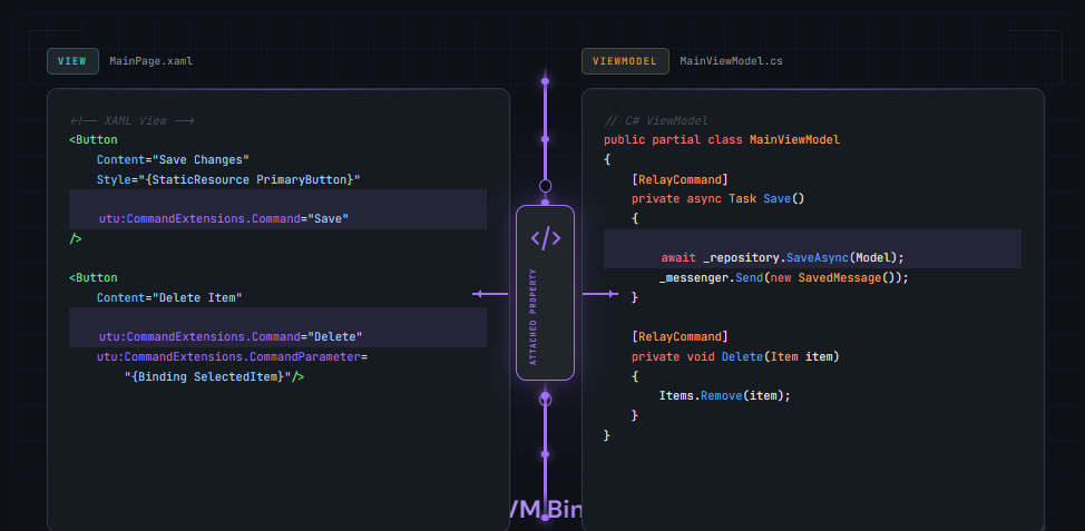 <Button Command="{Binding SaveCommand}" />